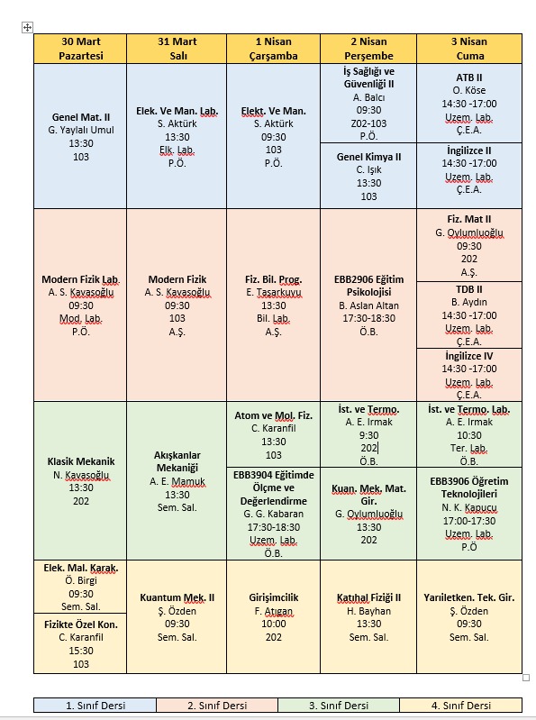 2025 - 2026 Bahar Yarıyılı Ara Sınav Programı